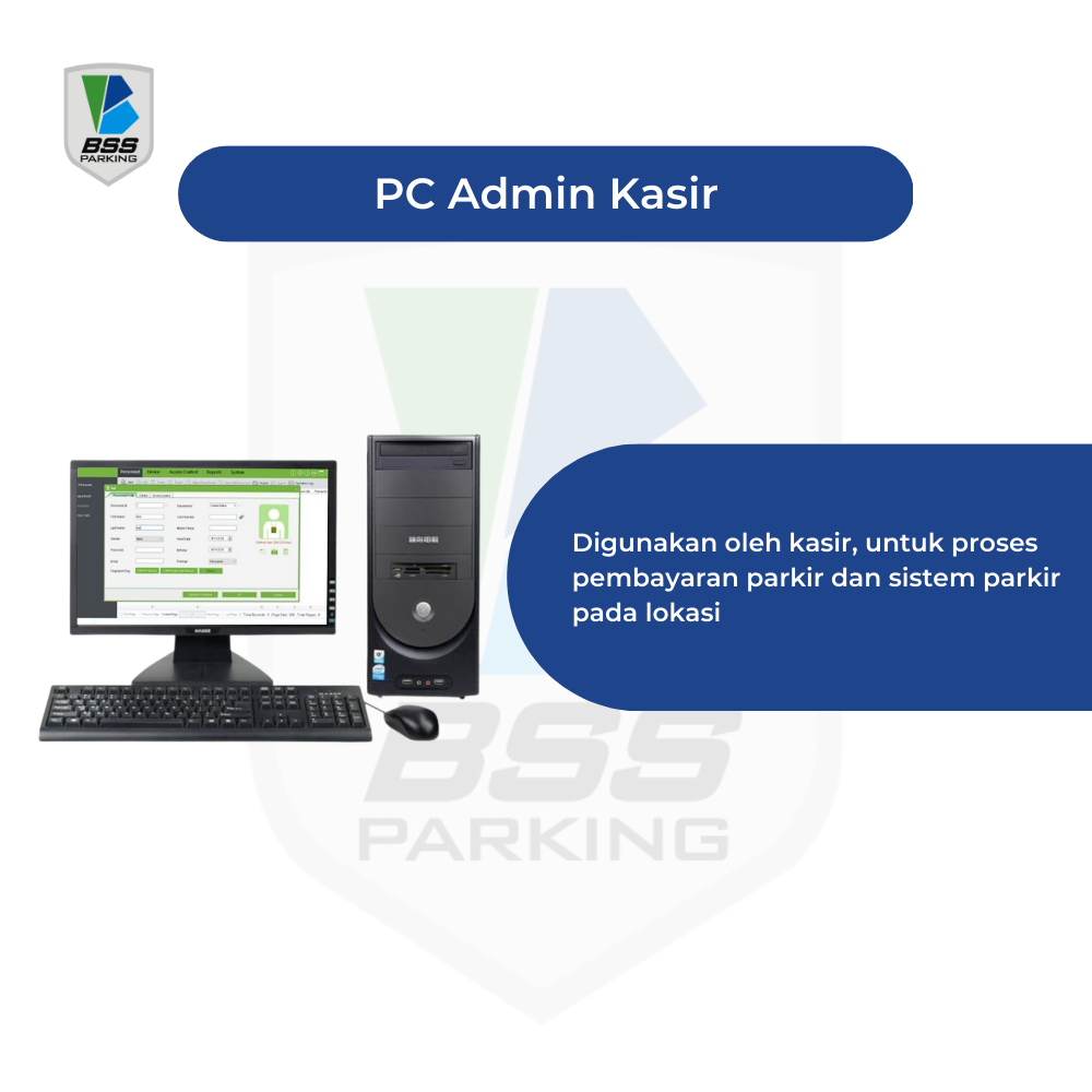 Personal Computer yang digunakan oleh kasir, untuk proses pendeteksian pembayaran parkir dan sistem parkir lainnya.